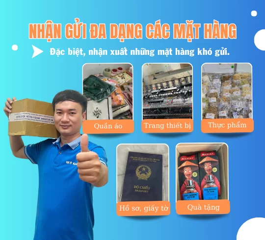 Tiếp nhận hàng tiêu dùng, thực phẩm khô, điện tử, hàng có pin… tùy điều kiện tuyến. Hàng gọn nhẹ, cồng kềnh, dễ vỡ đều có phương án đóng gói phù hợp.